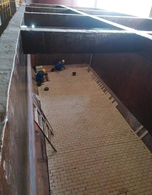 耐酸磚,玻璃鋼施工現(xiàn)場