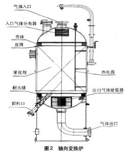 變換爐是合成氨工廠生產(chǎn)一氧化碳工段的設(shè)備,變換爐的結(jié)構(gòu)能否滿足工藝要求與計算設(shè)備、可靠性直接影響到產(chǎn)量、能耗、轉(zhuǎn)化率、觸媒用量和投資費用等。變換爐的結(jié)構(gòu)隨著現(xiàn)代技術(shù)的發(fā)展和現(xiàn)代氨生產(chǎn)量需求一直在不斷的發(fā)展中。